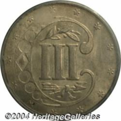<table><tr><td><TABLE cellSpacing=0 cellPadding=0 width="100%" bgColor=#000000 border=0><TBODY> <TR><TD width="100%"><TABLE cellSpacing=1 cellPadding=3 width="100%" border=0><TBODY><TR><TD width="100%" bgColor=#79735c><FONT face=arial color=#ffffff size=3><B>Description</B> </FONT></TD></TR><TR><TD width="100%" bgColor=#ffffff><FONT face=arial size=2><B>1857 3CS MS65 PCGS.</B></I> A well preserved tan-gold representative, with attractive golden-brown edges on the obverse. Sharply struck, save for minor weakness on the reverse peripheral stars, with a few faint die clash marks (as struck) on the upper reverse, and lovely satiny luster. Population: 18 in 65, 5 finer (10/03). </FONT></TD></TR></TBODY></TABLE></TD></TR></TBODY></TABLE><BR><A name=PricesRealized></A><TABLE cellSpacing=0 cellPadding=0 width="100%" bgColor=#000000 border=0><TBODY><TR><TD width="100%"><TABLE cellSpacing=1 cellPadding=3 width="100%" border=0><TBODY><TR><TD width="100%" bgColor=#79735c><A name=PR><FONT face=arial color=#ffffff size=3><B>Previous Prices from Heritage Auctions</B> </FONT></A></TD></TR><TR><TD bgColor=#f6f6ed><TABLE cellSpacing=0 cellPadding=0 width="100%" border=1><TBODY><TR><TD align=middle width="33%"><B>Date</B></TD><TD align=middle width="33%"><B>Service</B></TD><TD align=middle width="33%"><B>Price</B></TD></TR><TR bgColor=whitesmoke><TD width="33%"><B>11/12/2002</B></TD><TD width="33%">NGC</TD><TD width="33%">$1,955.00</TD></TR><TR bgColor=whitesmoke><TD width="33%"><B>08/05/2001</B></TD><TD width="33%">NGC</TD><TD width="33%">$1,725.00</TD></TR><TR bgColor=whitesmoke><TD width="33%"><B>04/14/2000</B></TD><TD width="33%">NGC</TD><TD width="33%">$1,868.75</TD></TR><TR bgColor=whitesmoke><TD width="33%"><B>08/02/1997</B></TD><TD width="33%">NGC</TD><TD width="33%">$2,587.50</TD></TR><TR bgColor=whitesmoke><TD width="33%"><B>05/01/1999</B></TD><TD width="33%">PCGS</TD><TD width="33%">$9,200.00</TD></TR></TBODY></TABLE></TD></TR><TR><TD bgColor=#ffffff><FONT face=arial size=1 ?>PLEASE NOTE: All prices realized reflect the final hammer price PLUS the buyer's premium in auctions that charge a buyer's premium. Each item has a notation at the top of the listing indicating whether that lot included a buyer's premium. Example: A item that sells with a final hammer price of $100 and a 20% buyer's premium will display with a price realized of $120. All information listed is intended to be as accurate as possible, but errors are possible. Please use this guide carefully and inform us of any inaccuracies. </FONT></TD></TR></TBODY></TABLE></TD></TR></TBODY></TABLE><BR><TABLE cellSpacing=0 cellPadding=0 width="100%" bgColor=#000000 border=0><TBODY><TR><TD width="100%"><TABLE cellSpacing=1 cellPadding=3 width="100%" border=0><TBODY><TR><TD width="100%" bgColor=#79735c colSpan=6><FONT face=arial color=#ffffff size=3><B>Price Guide*</B> </FONT></TD></TR><TR bgColor=#f6f6ed><TD align=middle><B>Grade</B> </TD><TD align=middle><B>Coin World<BR>(Trends)</B> </TD><TD align=middle><B>Numismedia<BR>Retail</B> </TD><TD align=middle><B>Numismedia<BR>Wholesale</B> </TD><TD align=middle><B>Coin<BR>Universe</B> </TD><TD align=middle><B>Heritage<BR>Value Index</B> </TD></TR><TR bgColor=#ffffff><TD align=middle>64</TD><TD align=right>$1,800.00</TD><TD align=right>---</TD><TD align=right>$1,150.00</TD><TD align=right>$1,500.00</TD><TD align=right>$1,109.00</TD></TR><TR style="FONT-WEIGHT: bold" bgColor=#cccfdd><TD align=middle>65</TD><TD align=right>$3,500.00</TD><TD align=right>---</TD><TD align=right>$2,375.00</TD><TD align=right>$3,750.00</TD><TD align=right>$2,320.75</TD></TR><TR bgColor=#ffffff><TD align=middle>66</TD><TD align=right>---</TD><TD align=right>---</TD><TD align=right>$4,175.00</TD><TD align=right>---</TD><TD align=right>---</TD></TR><TR bgColor=#ffffff><TD colSpan=6><FONT size=1>*All information listed is intended to be as accurate as possible, but errors are possible. No item may be returned or refused based on this information which is provided as a service to our customers. You should contact each pricing source directly to determine the accuracy of this information. </FONT></TD></TR></TBODY></TABLE></TD></TR></TBODY></TABLE><BR><TABLE cellSpacing=0 cellPadding=0 width="100%" bgColor=#000000 border=0><TBODY><TR><TD width="100%"><TABLE cellSpacing=1 cellPadding=3 width="100%" border=0><TBODY><TR><TD width="100%" bgColor=#79735c><FONT face=arial color=#ffffff size=3><B>Population Guide</B> </FONT></TD></TR><TR bgColor=#ffffff><TD align=middle><!-- Begin Output of Population Grid--><TABLE cellSpacing=0 cellPadding=0 width="100%" border=0><TBODY><TR><TD vAlign=center><TABLE cellSpacing=0 width="100%" border=1 cellsadding="3"><TBODY><TR><TD vAlign=center><TABLE cellSpacing=0 cellPadding=3 width="100%" border=1><TBODY><TR><TD vAlign=center align=middle bgColor=#f0f1e8 colSpan=2 <CENTER><FONT face=Arial size=2><B>PCGS Pop </B></FONT><CENTER></CENTER></TD><TD vAlign=center align=middle bgColor=#f0f1e8 colSpan=2><CENTER><FONT face=Arial size=2><B>NGC Pop</B></CENTER></FONT></TD></TR><TR><TD vAlign=center><FONT face=Arial size=2>(65)</FONT> </TD><TD vAlign=center align=right><FONT face=Arial size=2>19</FONT> </TD><TD vAlign=center><FONT face=Arial size=2>(65)</FONT> </TD><TD vAlign=center align=right><FONT face=Arial size=2>29</FONT> </TD></TR><TR><TD vAlign=center><FONT face=Arial size=2>(>65)</FONT> </TD><TD vAlign=center align=right><FONT face=Arial size=2>5</FONT> </TD><TD vAlign=center><FONT face=Arial size=2>(>65)</FONT> </TD><TD vAlign=center align=right><FONT face=Arial size=2>13</FONT> </TD></TR></TBODY></TABLE></TD></TR></TBODY></TABLE></TD></TR></TBODY></TABLE><!-- End Output of Population Grid--></TD></TR></TBODY></TABLE></TD></TR></TBODY></TABLE><BR><TABLE cellSpacing=0 cellPadding=0 width="100%" bgColor=#000000 border=0><TBODY><TR> <font color='#000000'><span style='background-color: #FFFFFF'><td bgcolor='#FFFFFE'> Important notice: Heritage usually auctions material at the rate of 200-250 lots per ho