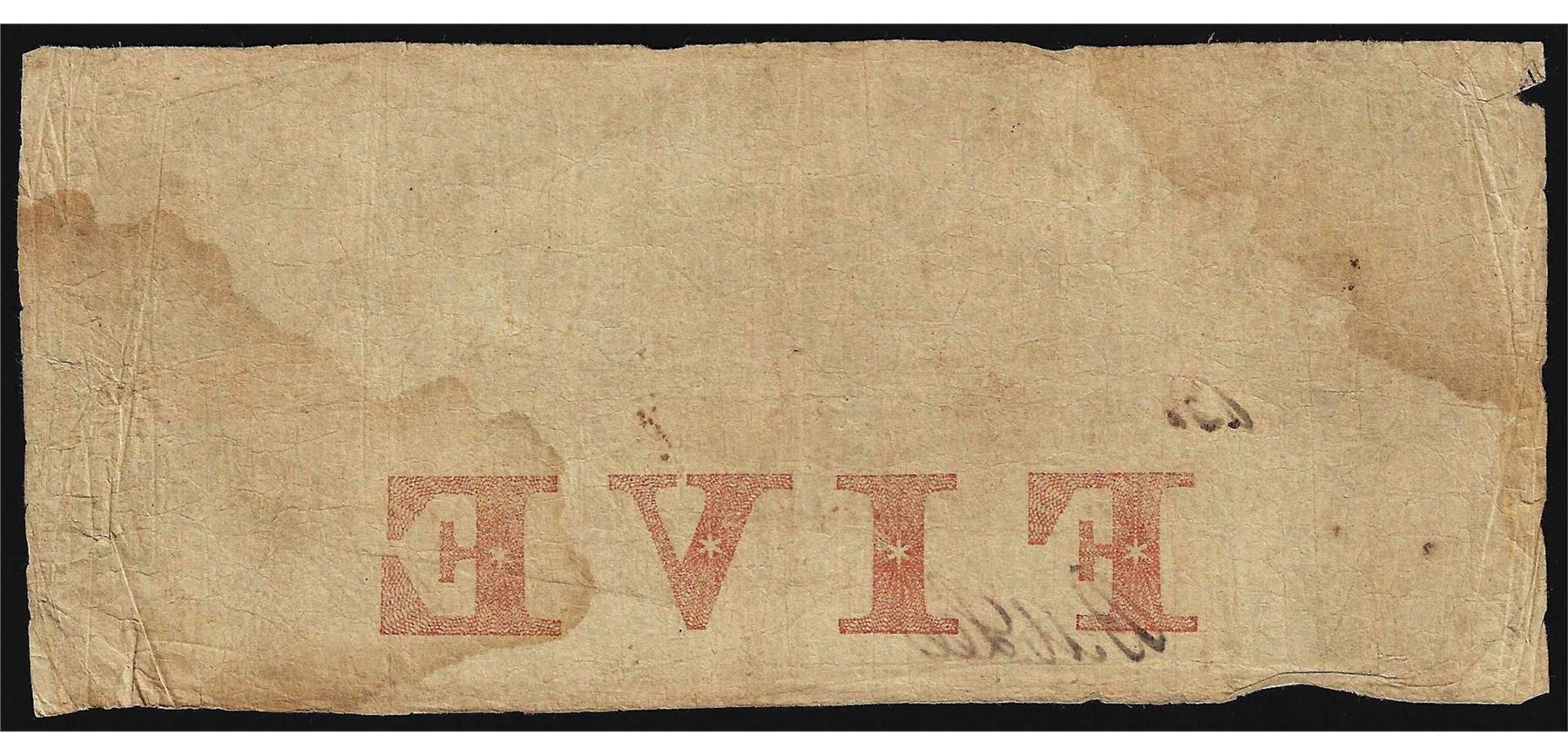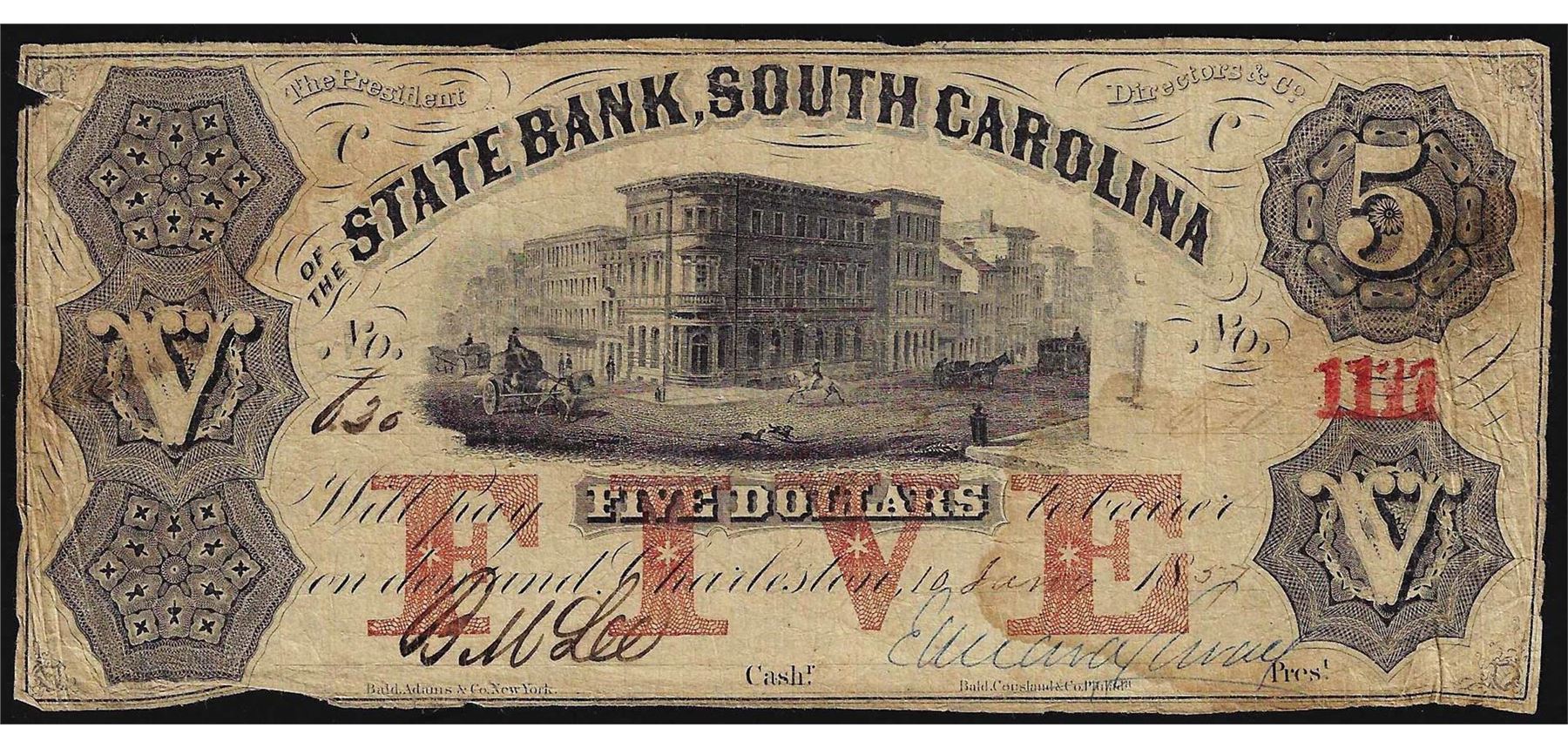 One 1857 $5 The State Bank of South Carolina Obsolete Note.