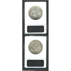 1857 50C AU50 ANACS, WB-103, base of the date originally punched into the rock, golden-brown and aqua peripheral patina, well struck except for the right side stars, struck from rotated and clashed dies; and an 1858 AU50 ANACS, WB-101, tail hub 1, two-tone gray patina aside from blushes of gold color at the borders, the remaining luster is subdued but extensive, some slide marks but very little rub.From the Ohio Collection. 2 coins Important notice: We expect to be auctioning lots at the rate of 200-250 per hour. Sometimes eBay Premier live bid software cannot keep up with that pace, so we strongly recommend that you place a realistic proxy bid now as insurance to avoid disappointment. Also please note that all Heritage/CAA lots purchased through eBay Premier carry a 20% Buyer's Premium. Please make sure you read the Terms and Conditions.