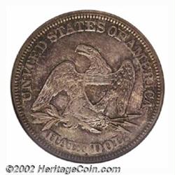 1857 50C MS65 NGC. WB-101. This variety includes five distinct obverse dies, all of which display a normal date. Half Dollar production at the Philadelphia Mint remained strong through 1857 with 1.9 million coins emerging from the presses. Although common in worn condition, the '57-P is remarkably elusive in Mint State. This is a fully original and obviously important Gem with dappled olive and orange-gold shadings over antique-copper patina. The luster is full and frosty, and there are no outwardly distracting abrasions. Struck from misaligned with softness of detail over the upper obverse and lower reverse. NGC and PCGS combined report 13 coins in MS65 and a mere four finer (7/02). Important notice: We expect to be auctioning lots at the rate of 200-250 per hour. Sometimes eBay Premier live bid software cannot keep up with that pace, so we strongly recommend that you place a realistic proxy bid now as insurance to avoid disappointment. Also please note that all Heritage/CAA lots purchased through eBay Premier carry a 20% Buyer's Premium. Please make sure you read the Terms and Conditions.