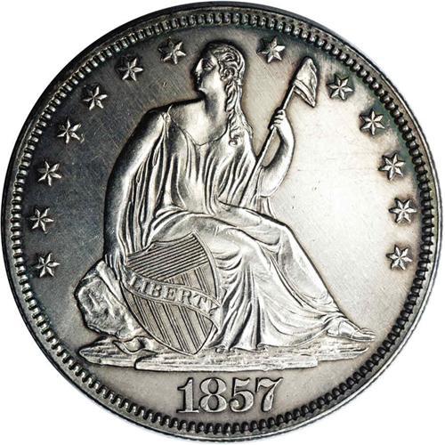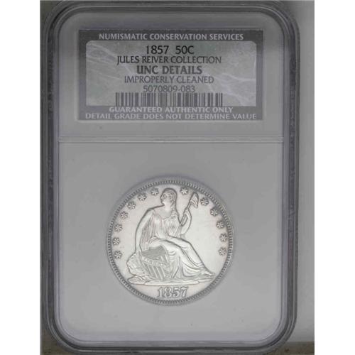 1857 50C Unc Details, Improperly Cleaned, NCS. Bright 1857[50C]--Improperly Cleaned--NCS. Unc. Detai