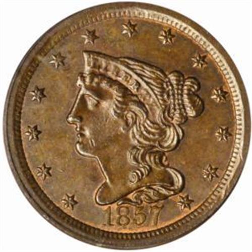 1857 Braided Hair H1C. C-1, B-1 R-2 MS63BN PCGS