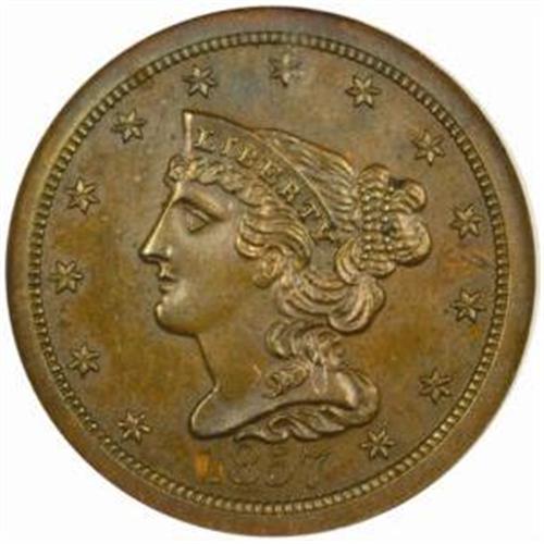 1857 Braided Hair HH1C. C-1, B-2 R-4. PR65BN NGC