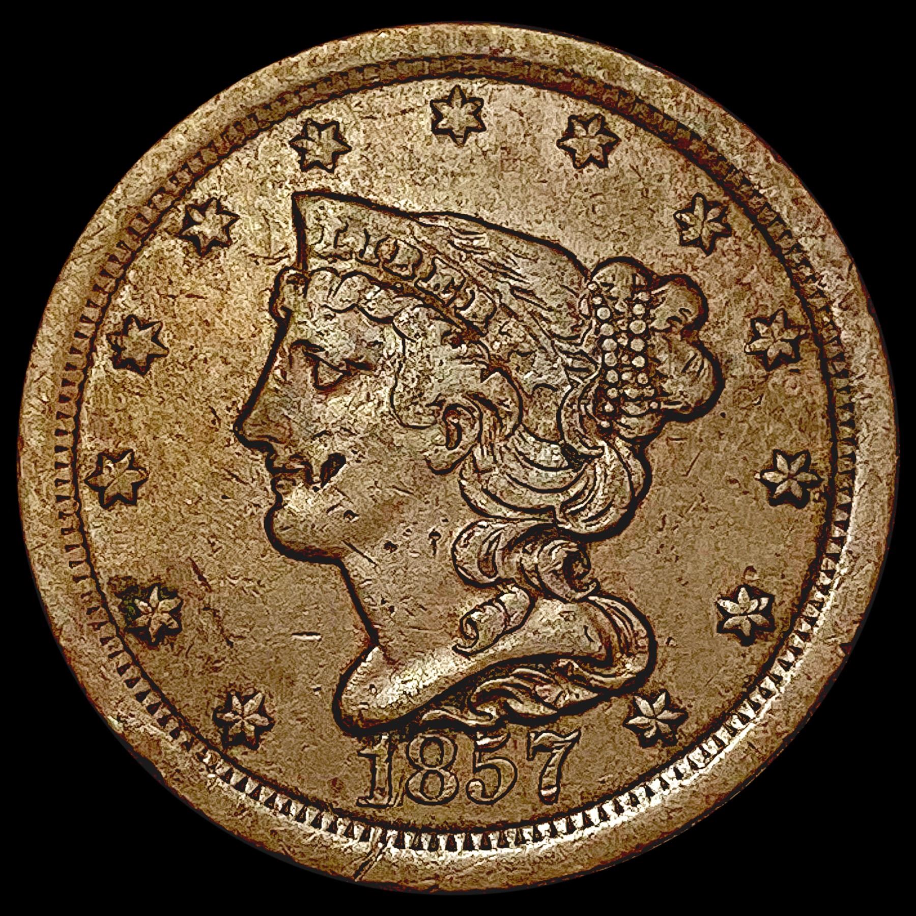 1857 Braided Hair Half Cent CLOSELY UNCIRCULATED