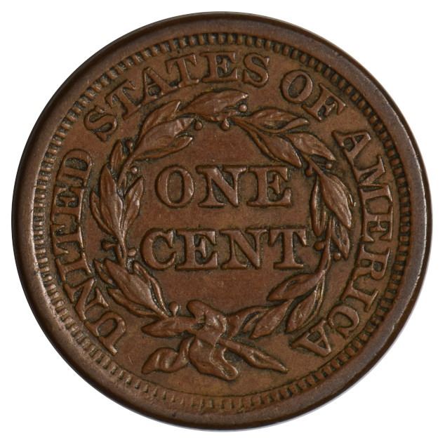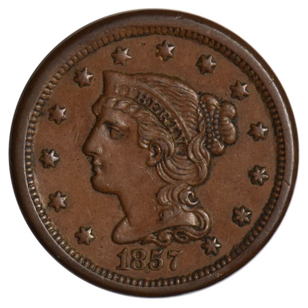 One 1857 Braided Hair Large Cent.