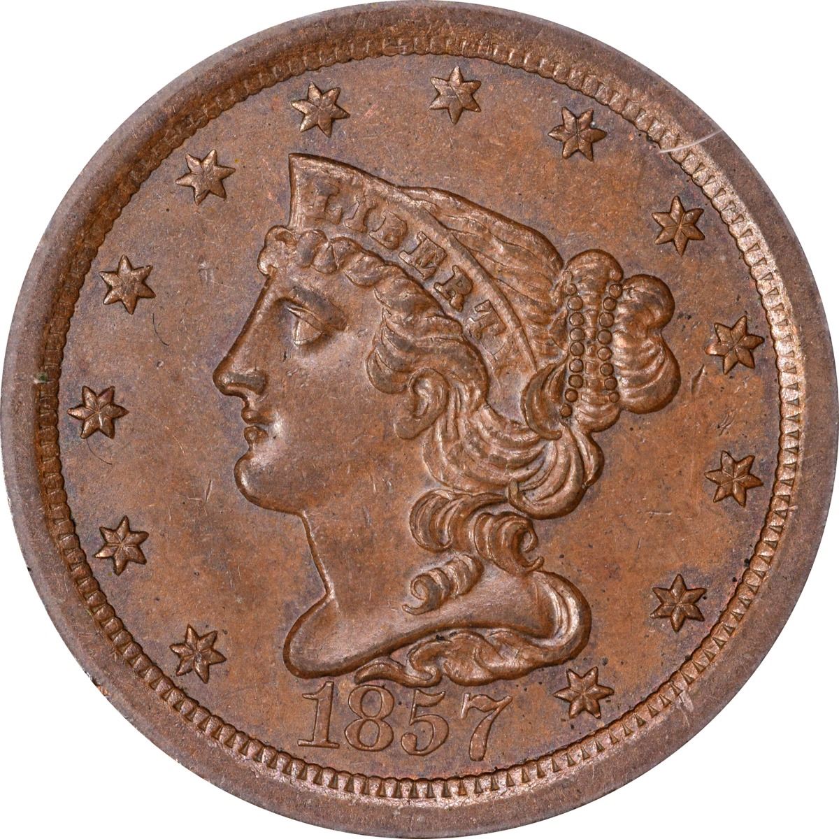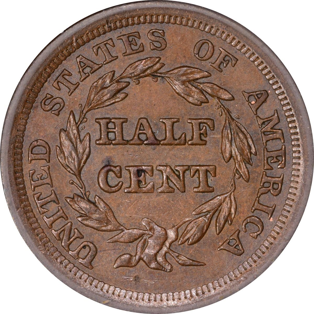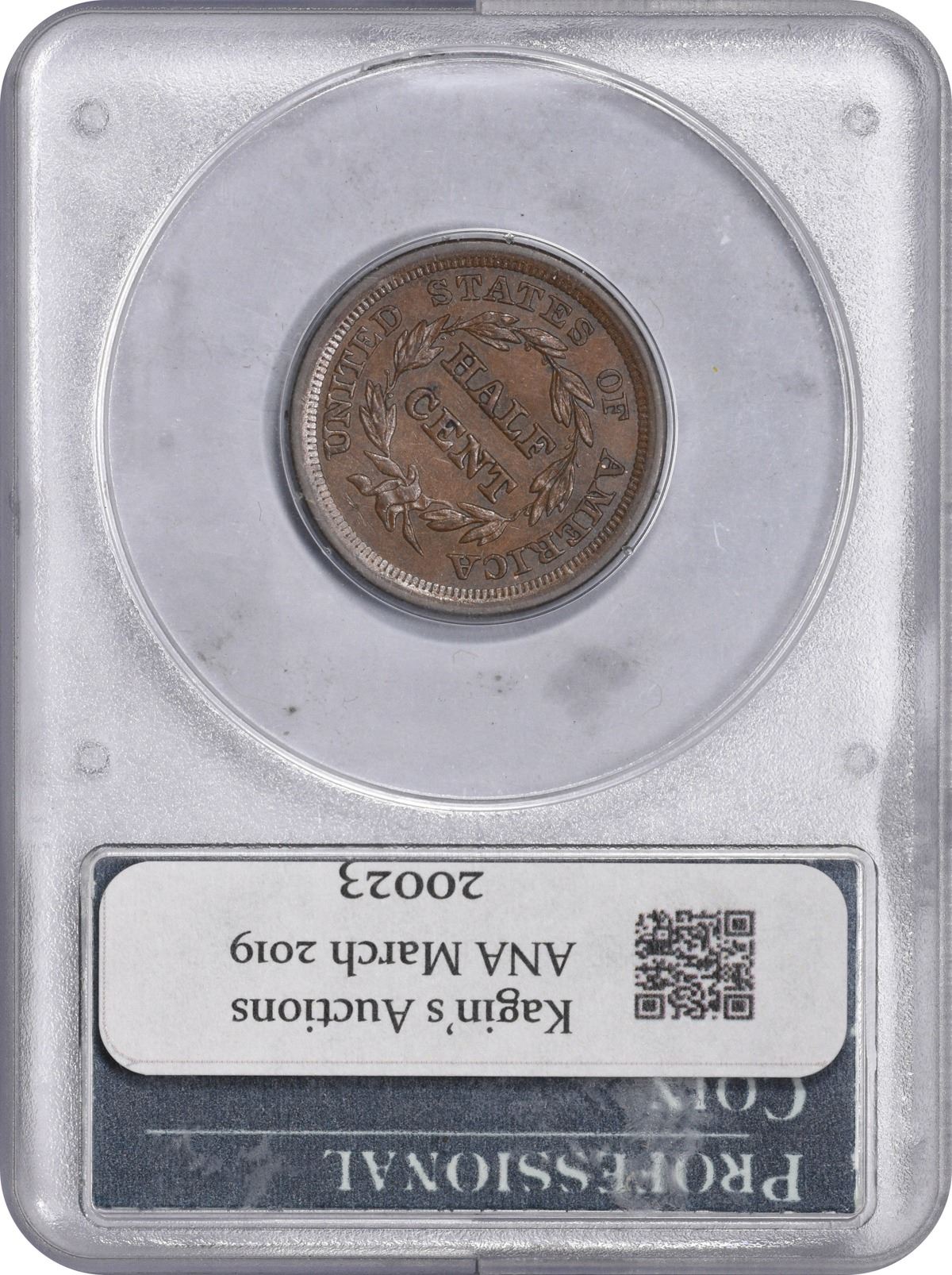 Somewhat glossy deep golden-tan throughout with strong design details despite some modest weakness at the uppermost obverse stars. No serious marks come to light under low magnification. From the final year of coinage in the half cent denomination. Housed in a small first-generation green label PCGS “rattler” holder. PCGS #1239
