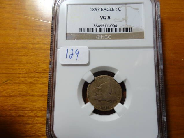 1857 CIVIL WAR FLYING EAGLE 1 CENT, NGC VG-8