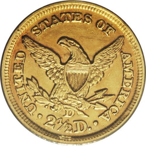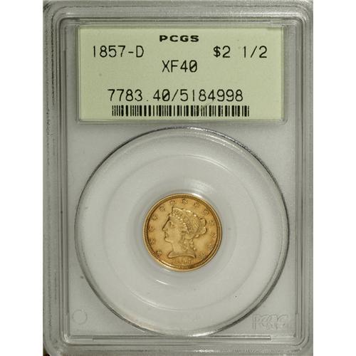 1857-D $2 1/2 XF40 PCGS. A tiny mintage of 2,364 piece