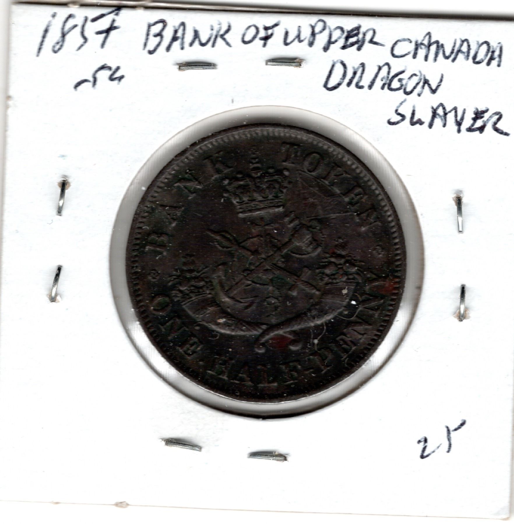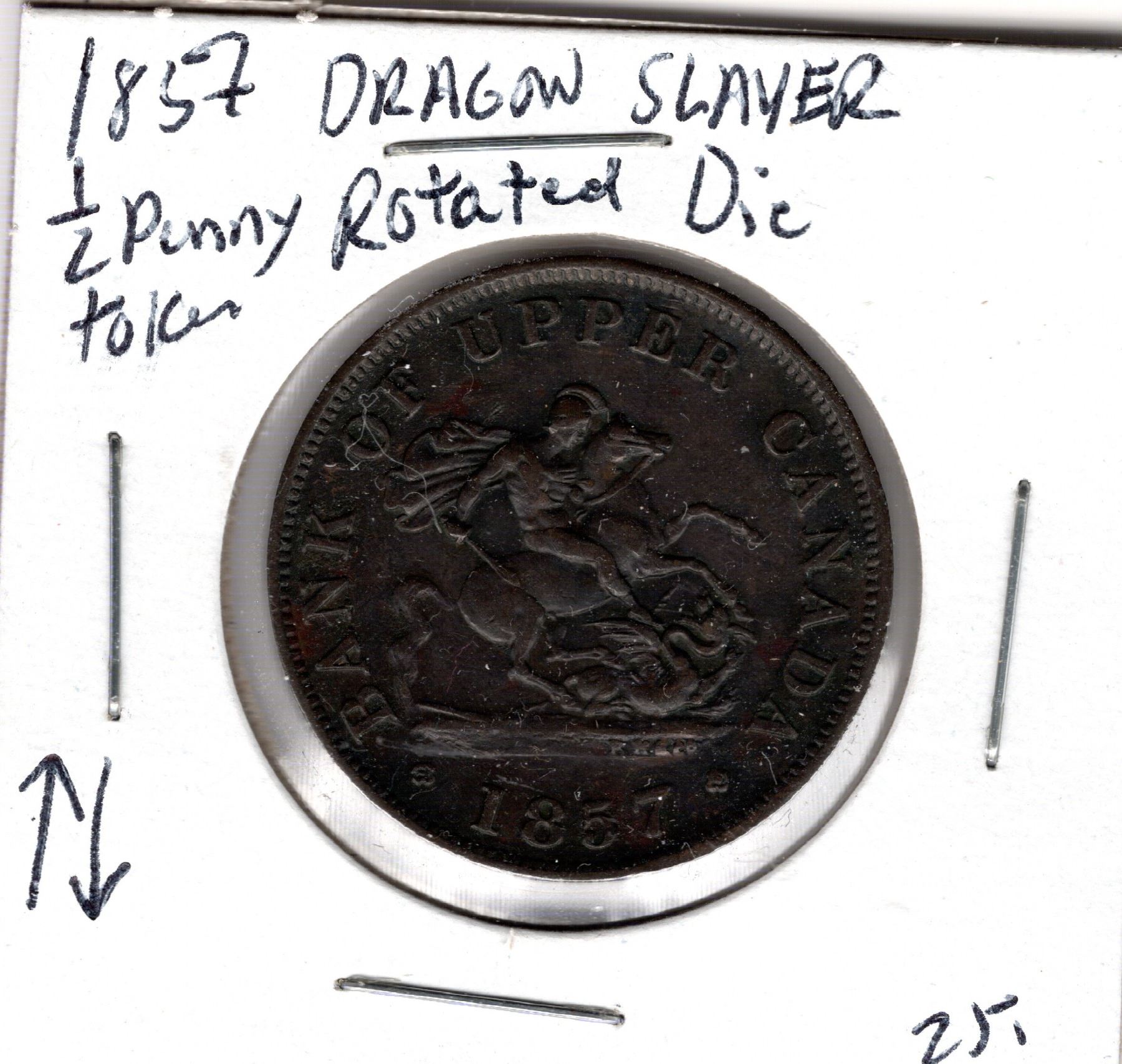 1857, DRAGONSLAYER, HALF PENNY TOKEN, ROTATED DIE