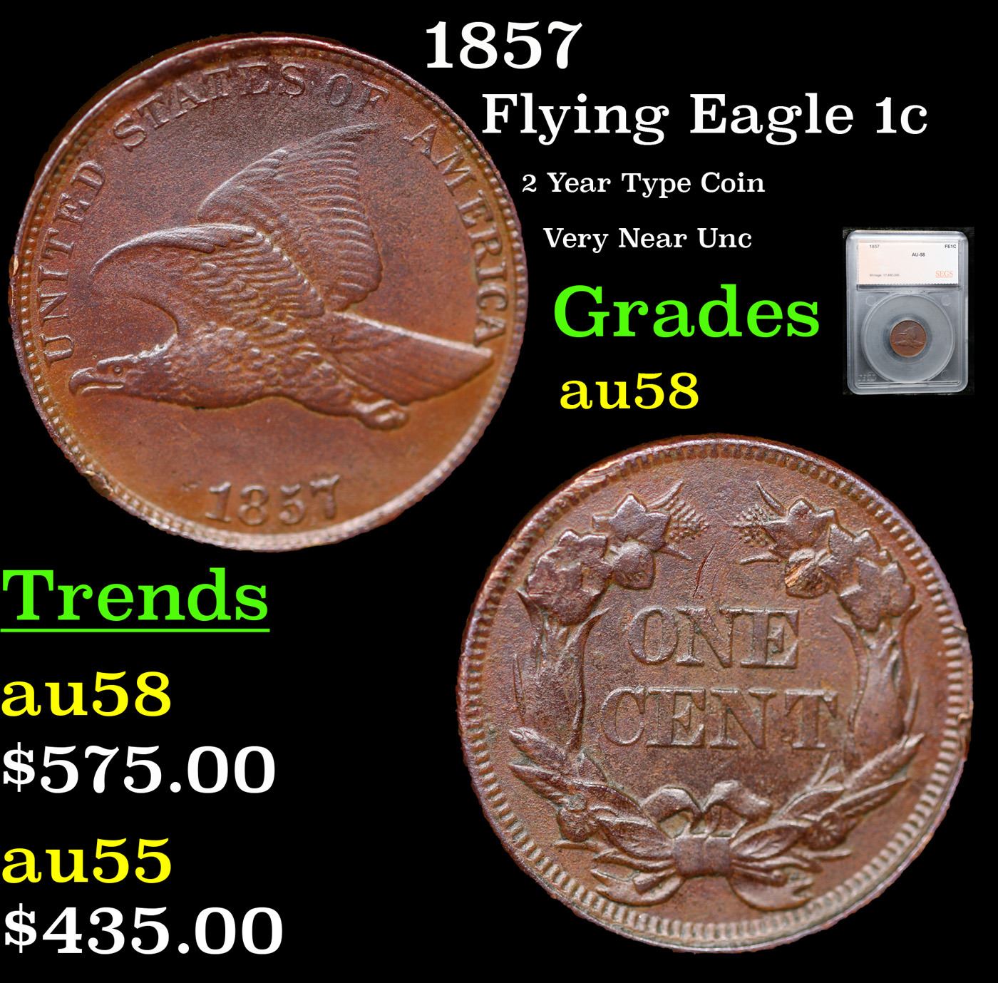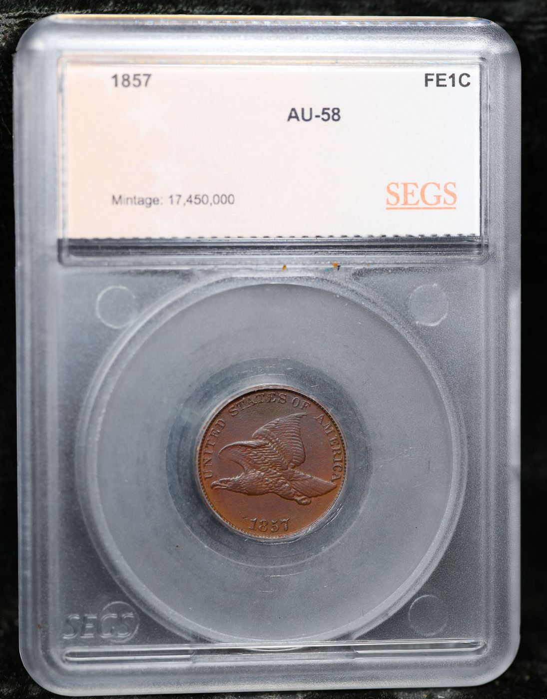 1857 Flying Eagle Cent 1c Graded au58 By SEGS.