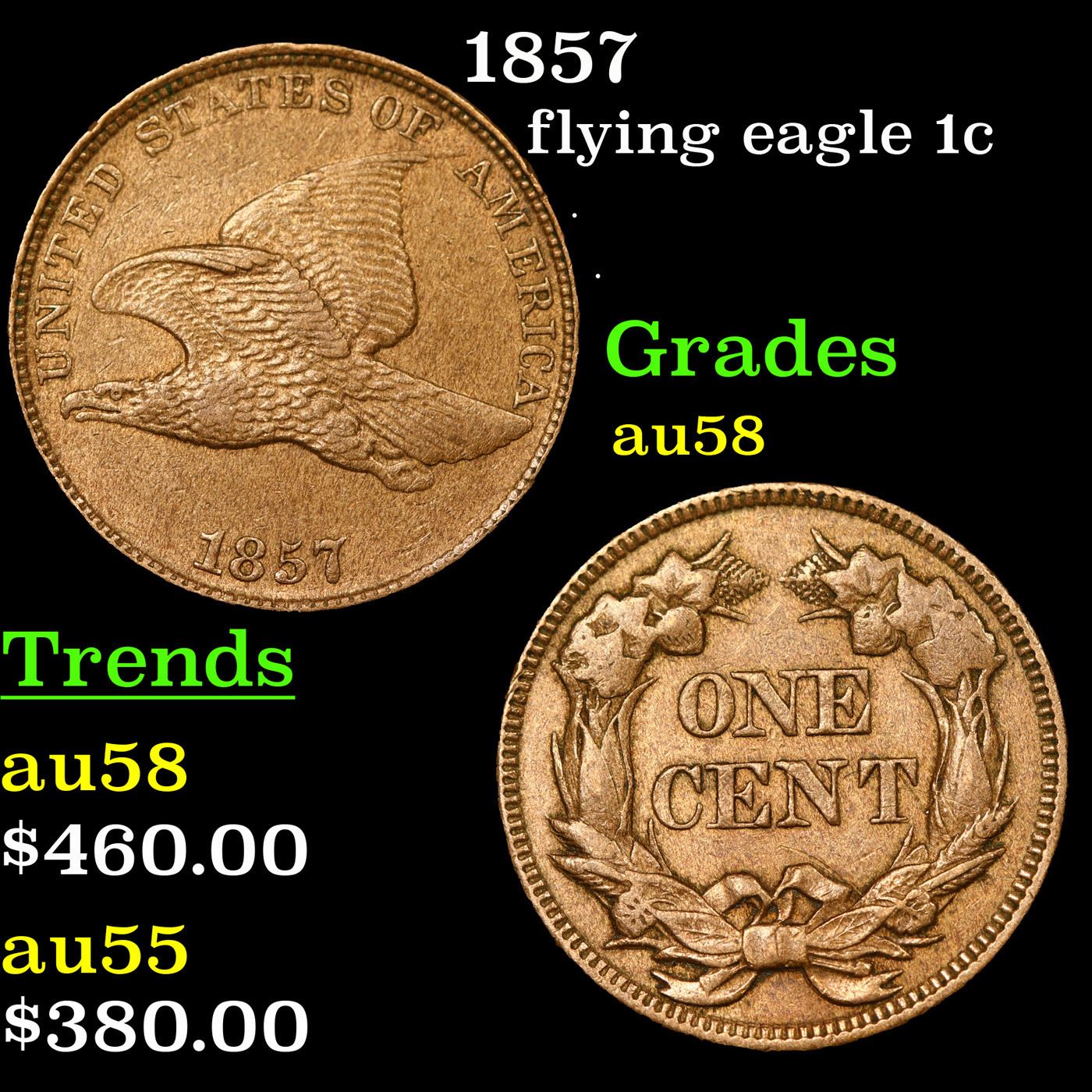 1857 Flying Eagle Cent 1c Grades Choice AU/BU Slider.