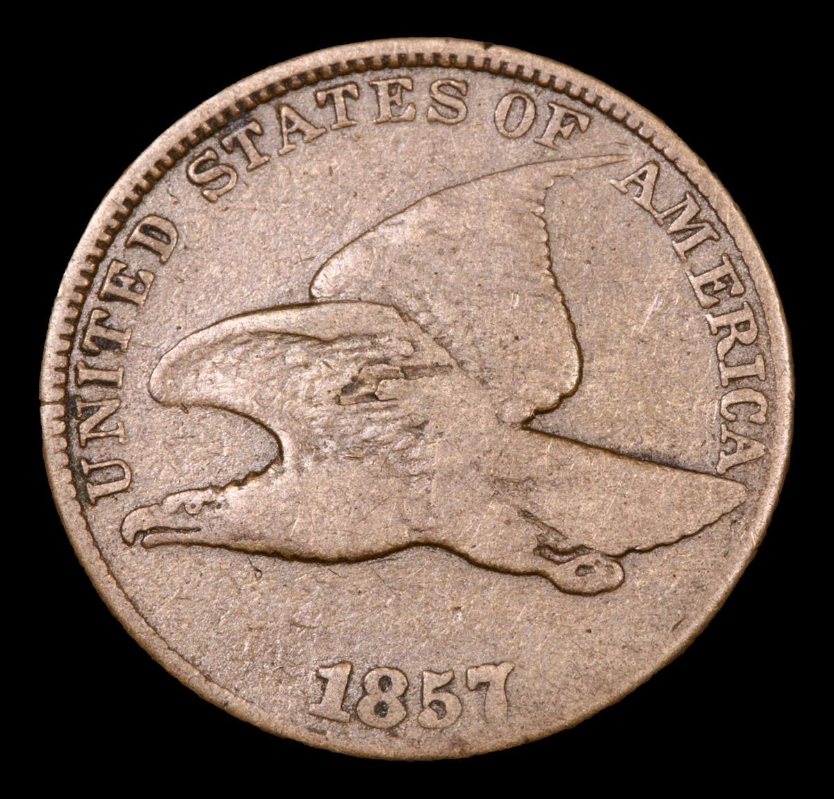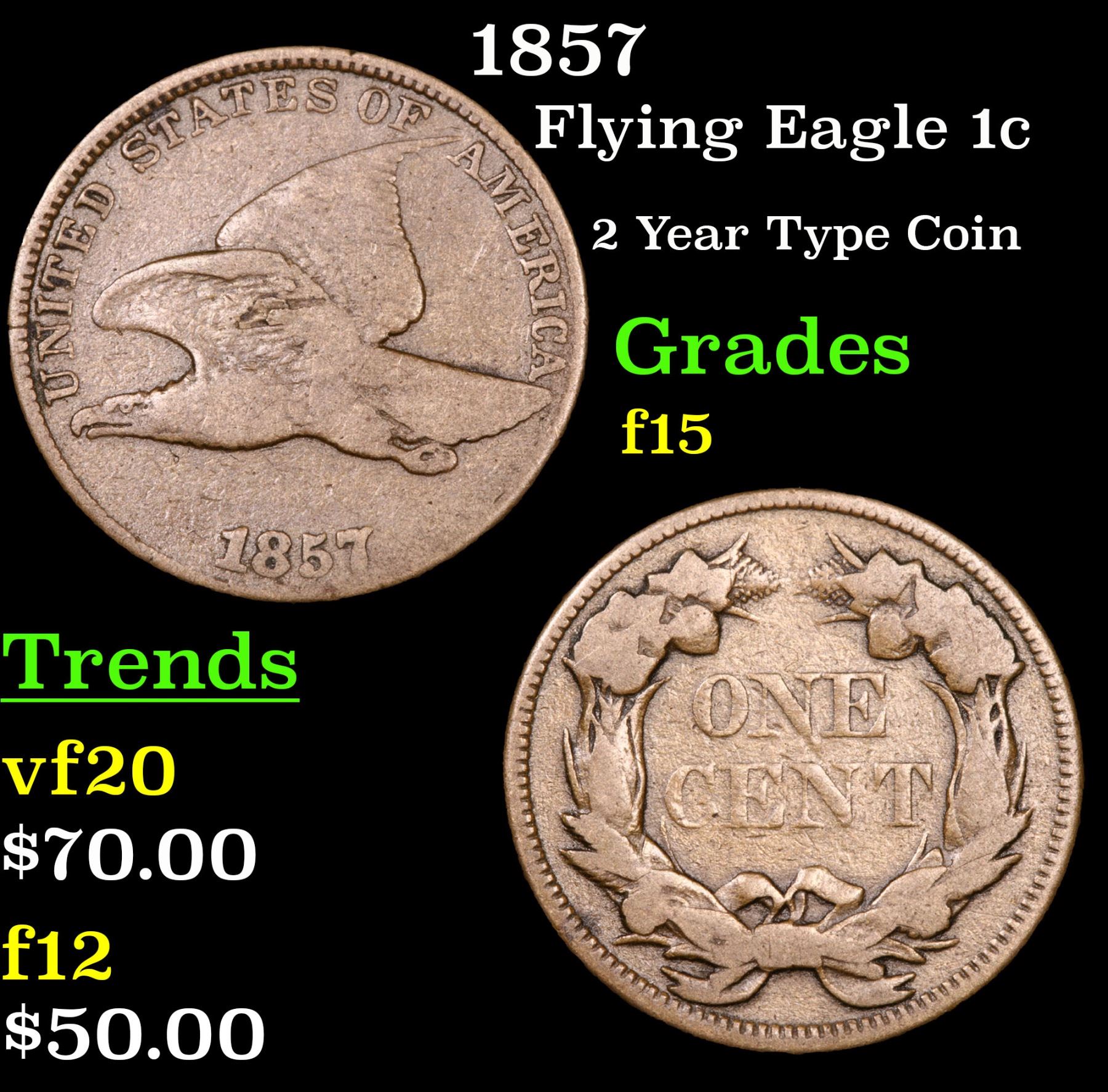 1857 2 Year Type Coin . Flying Eagle Cent 1c Grades f+.