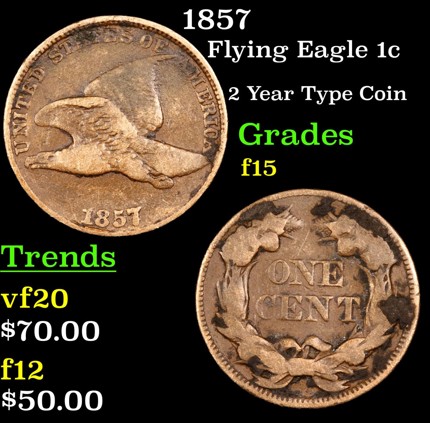 1857 Flying Eagle Cent 1c Grades f+.