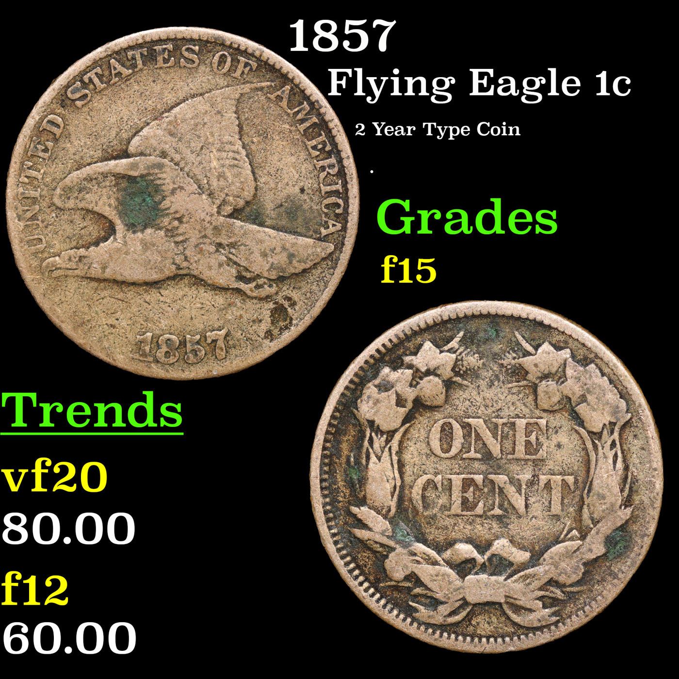 1857 Flying Eagle Cent 1c Grades f+.
