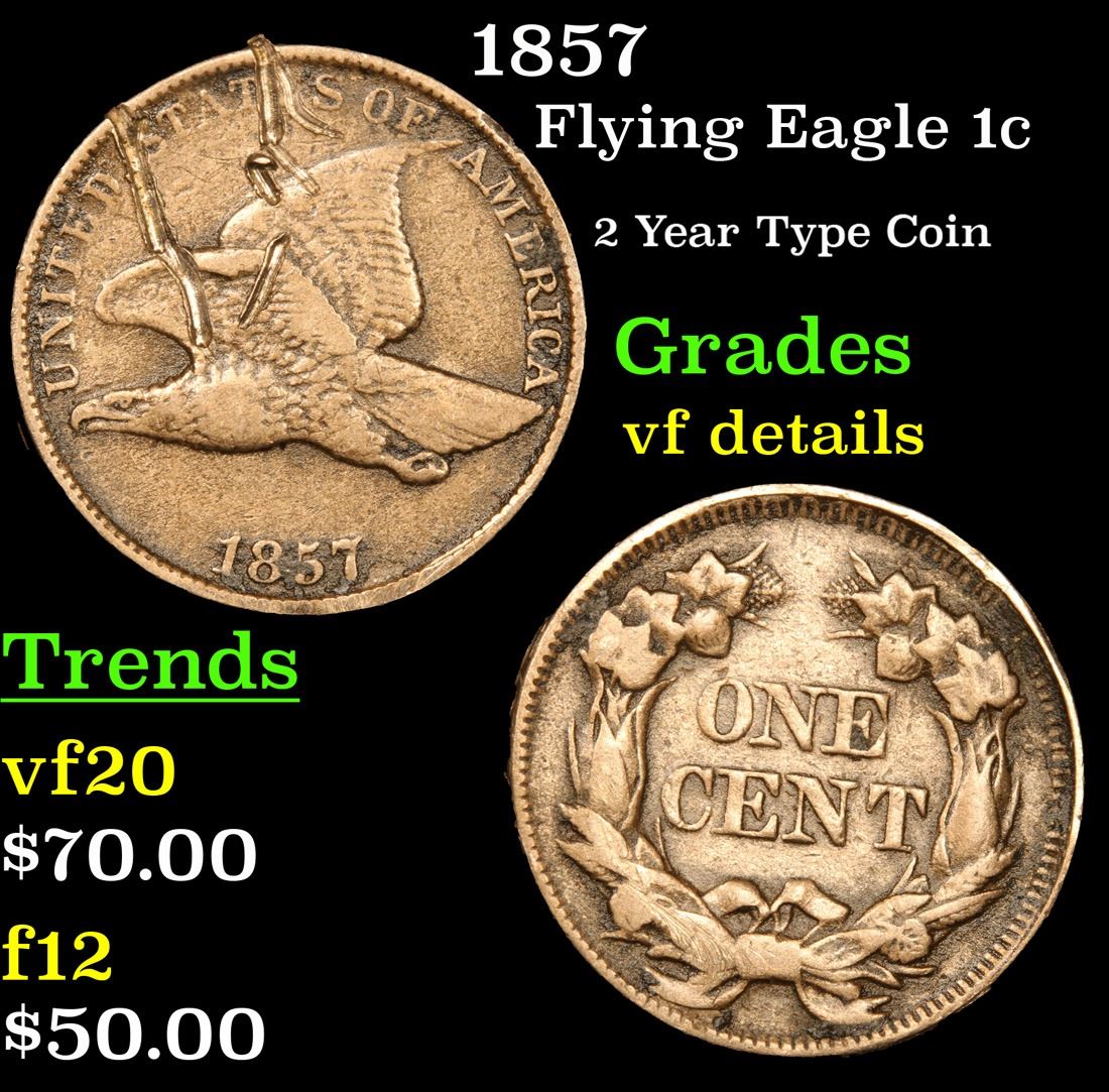 1857 2 Year Type Coin . Flying Eagle Cent 1c Grades vf details.