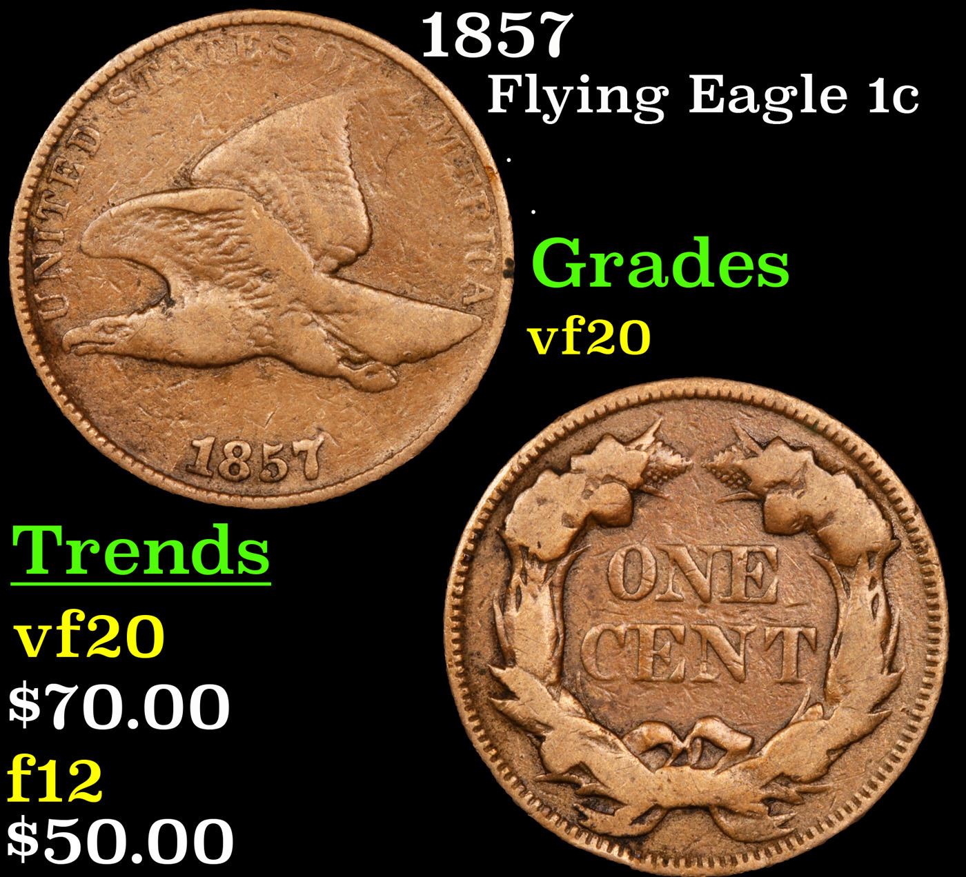 1857 Flying Eagle Cent 1c Grades vf, very fine