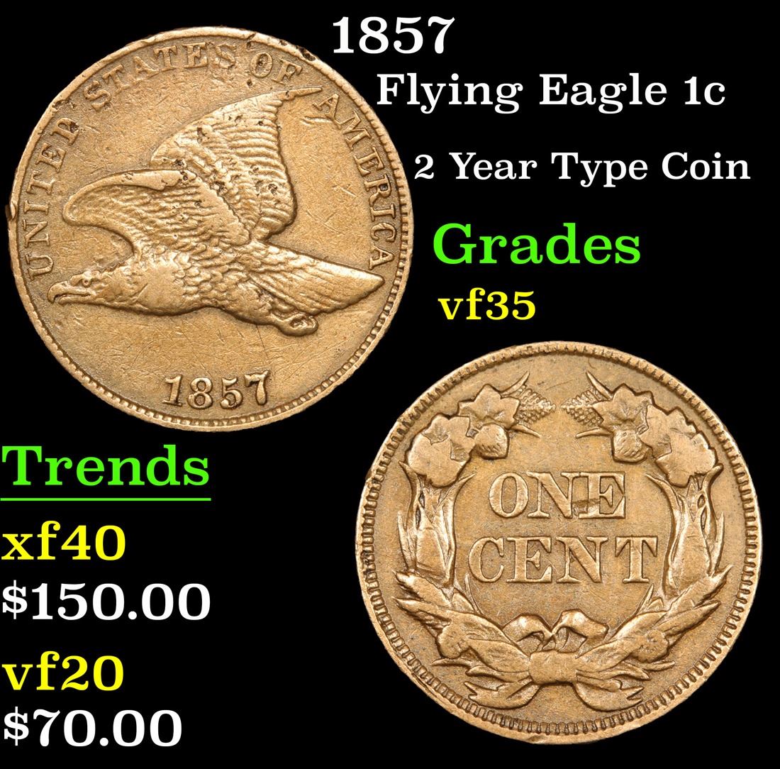 1857 2 Year Type Coin . Flying Eagle Cent 1c Grades vf++.