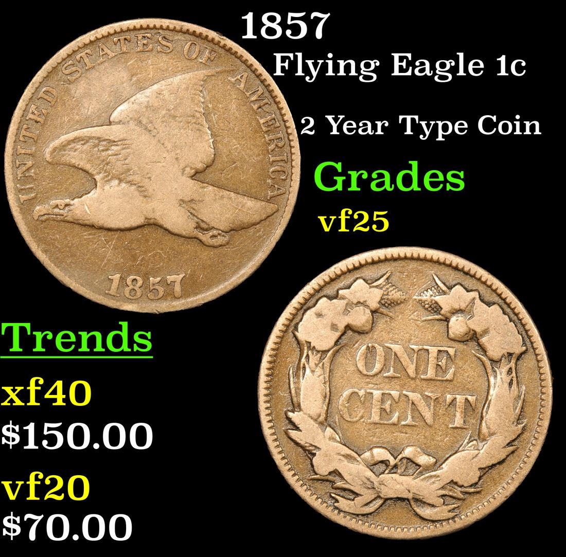 1857 2 Year Type Coin . Flying Eagle Cent 1c Grades vf+.