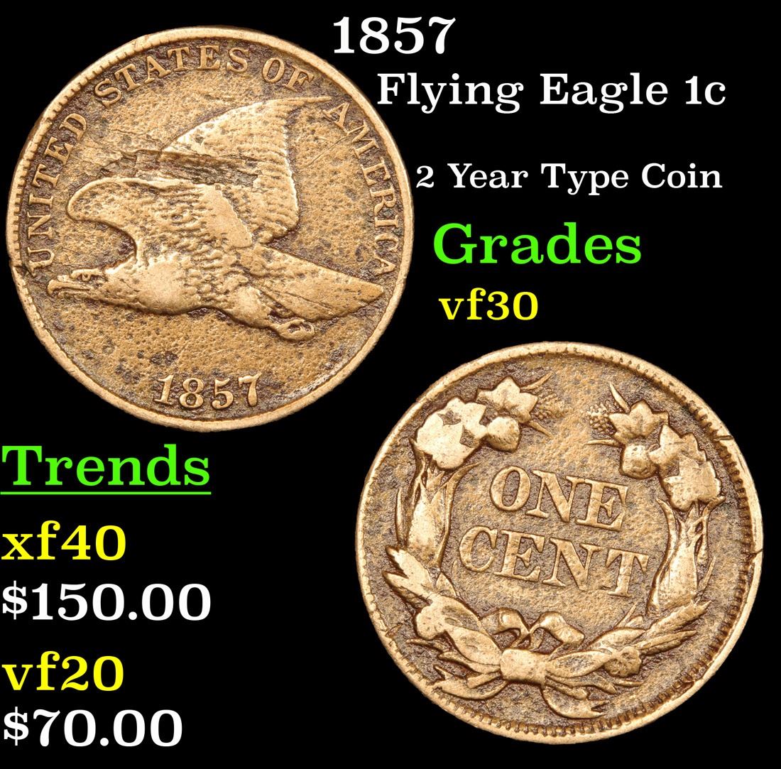 1857 2 Year Type Coin . Flying Eagle Cent 1c Grades vf++.