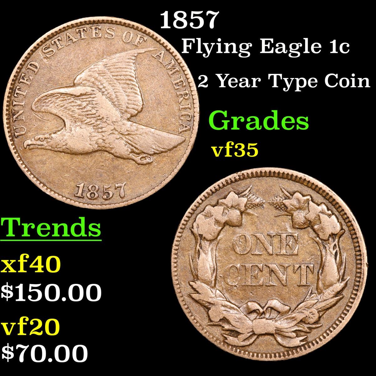 1857 2 Year Type Coin . Flying Eagle Cent 1c Grades vf++.