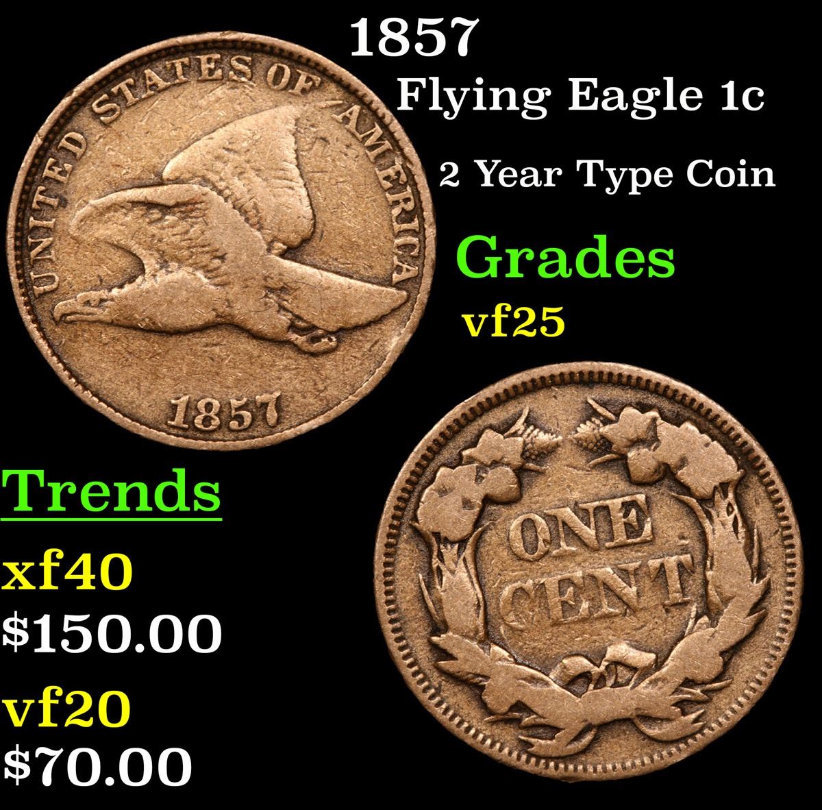 1857 2 Year Type Coin . Flying Eagle Cent 1c Grades vf+.