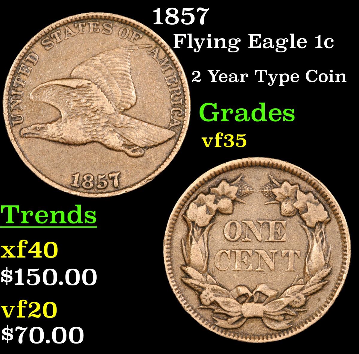 1857 2 Year Type Coin . Flying Eagle Cent 1c Grades vf++.