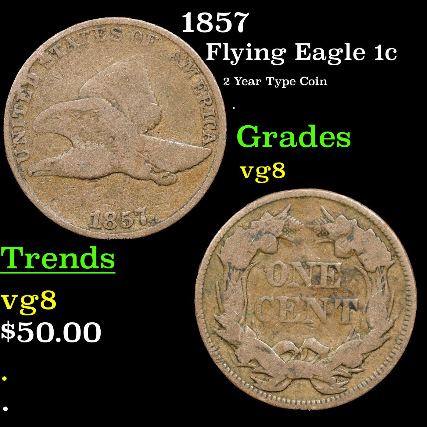 1857 Flying Eagle Cent 1c Grades vg, very good.