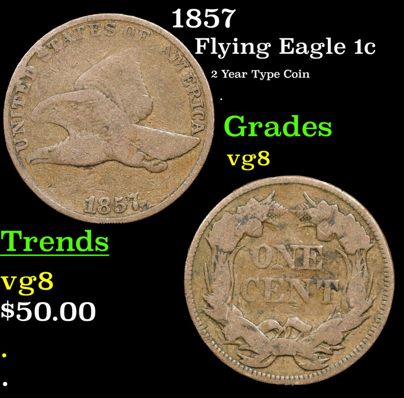 1857 Flying Eagle Cent 1c Grades vg, very good.