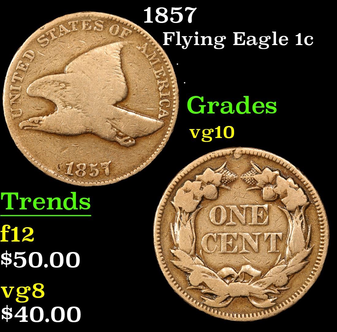 1857 Flying Eagle Cent 1c Grades vg+.