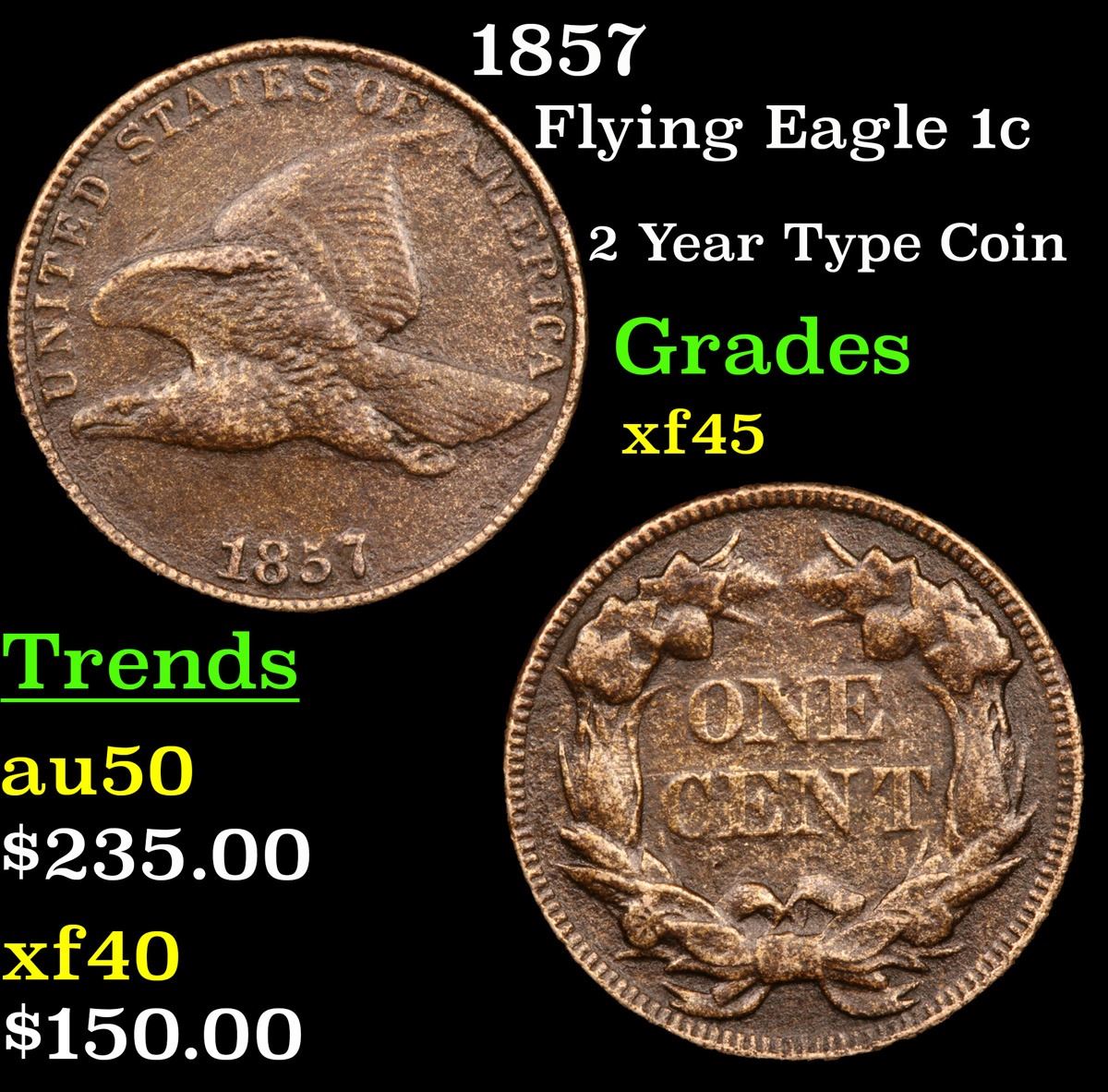 1857 Flying Eagle Cent 1c Grades xf+.