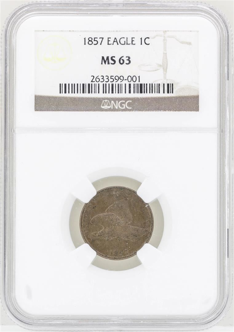 One 1857 Flying Eagle Cent Coin NGC MS63. NGC Certified.