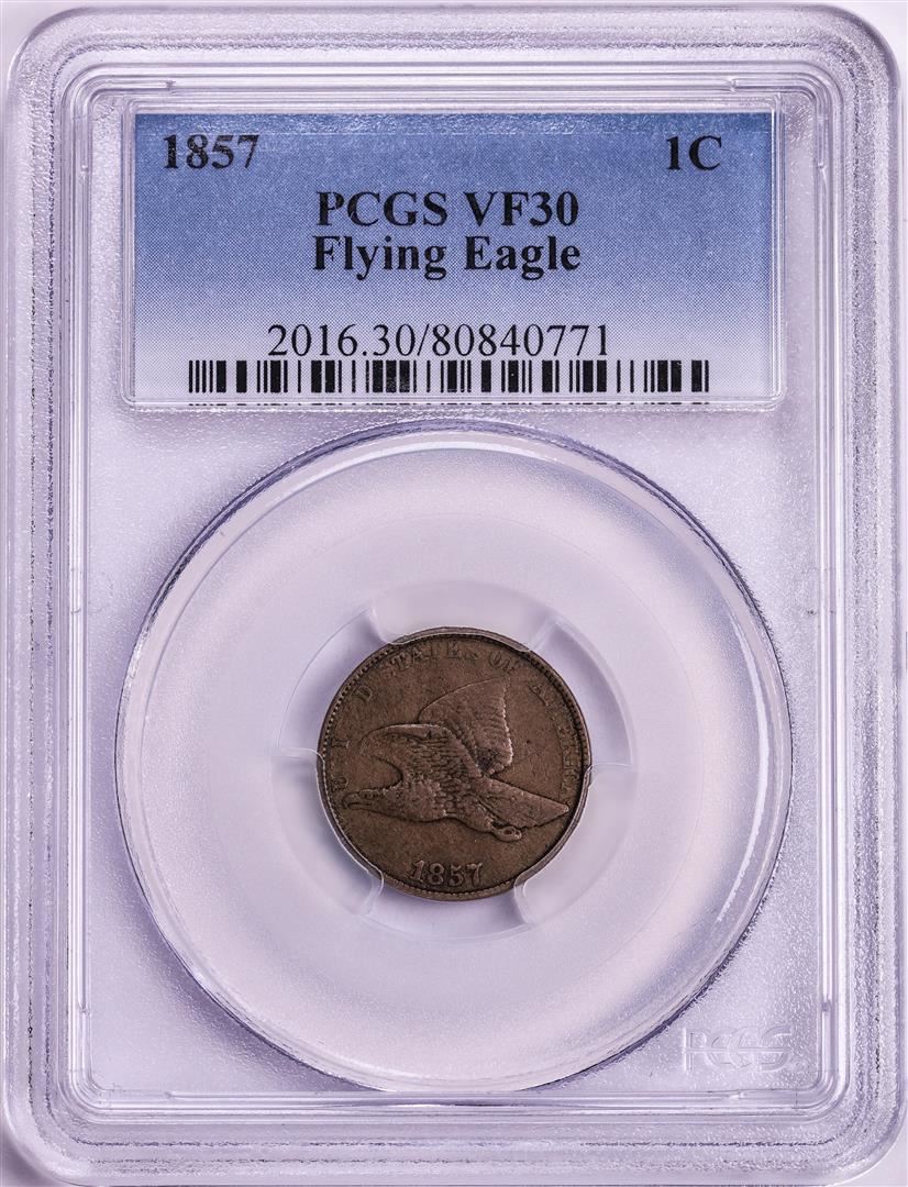 One 1857 Flying Eagle Cent Coin PCGS VF30. PCGS Graded.