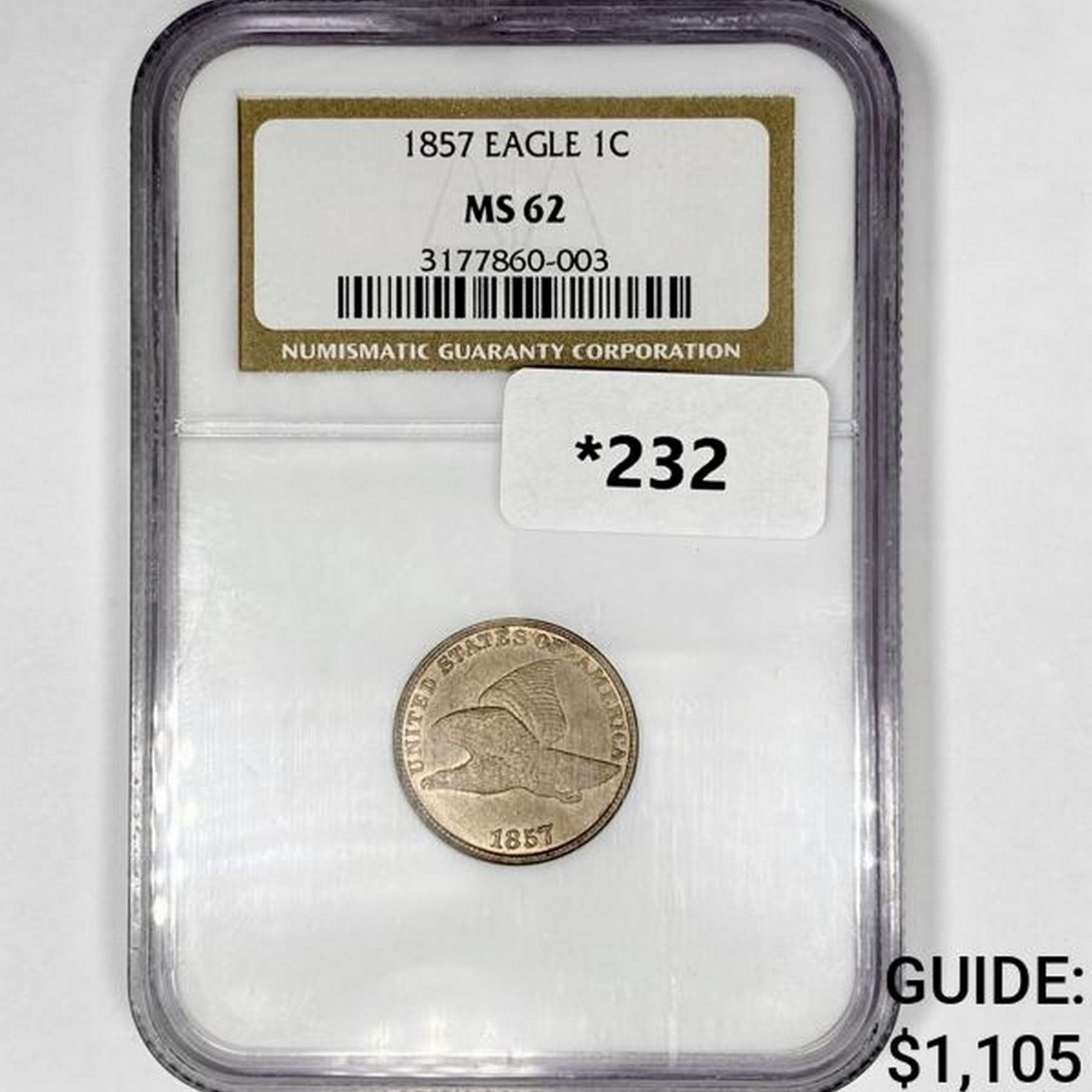 1857 Flying Eagle Cent NGC MS62