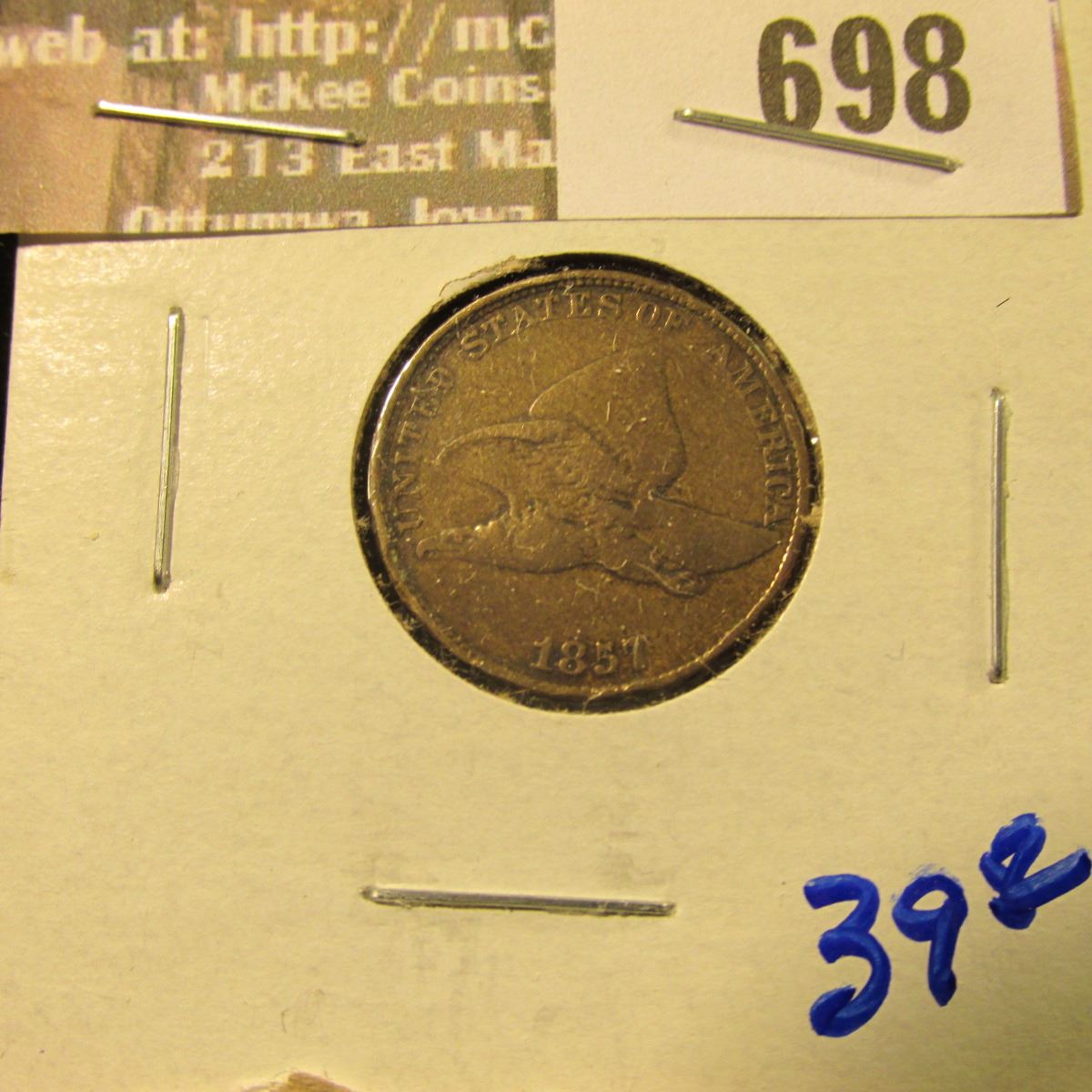 1857 Flying Eagle Cent With Full Rims And Letters Visible