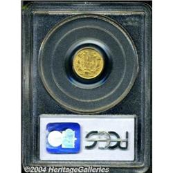 <table><tr><td><table><tr><td>1857 G$1 MS64 PCGS. A bright Choice Mint State coin that shows good definition of strike on the obverse and reverse. This piece has good luster that swirls around the surfaces. Problem-free for the grade, and an impressive example of an early Type Three Gold Dollar. Traditionally considered a common date, the 1857 is surprisingly elusive in Mint State, especially at higher levels, with only 21 pieces having been graded MS64 by PCGS, and 16 finer (3/04). <BR><BR><B>Important notice:</B> Heritage usually auctions material at the rate of 200-250 lots per hour. On some occasions eBay Live bid software or the Internet may not be able to keep up with the pace of the auction. We recommend placing a realistic absentee bid now as insurance to avoid disappointment. Occasionally the auctioneer may eliminate or reject an eBay Live bid, and the auctioneer may also reopen a lot after the close of the eBay live bidding (usually because we missed an audience bid), and may reject your bid even if it shows you as the winning bidder. By bidding via eBay Live, you agree that Heritage may award the lot to another bidder at its sole discretion under the circumstances described above or any other reasonable circumstances. Since eBay bids are not shown to us until we open the lot on the floor, we treat those bids just like floor bids. In most cases the floor responds before the eBay bid is presented to us, due to Internet lag time, so for consistency we have made it a policy that floor bids are always considered first over tie eBay live bids. Also please note that all Heritage lots purchased through eBay Live carry a 20% Buyer's Premium. Please make sure you read the Terms and Conditions before you bid. <BR><BR><B>IMPORTANT ANNOUNCEMENT ABOUT RESERVES:</B> Heritage now divulges all reserves on its web site 7 days before every auction. If you want to know whether the reserve on this lot has been met, and if not, what the reserve amount is, please visit this lot page on the HeritageCoin.com web site, or email: bid@HeritageGalleries.com </span></font></td></tr></table></td></tr></table>