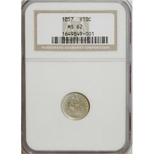 <B>1857 H10C MS62 NGC.</B></I> NGC Census: (75/445). PCGS Population (49/334). Mintage: 7,280,000. Numismedia Wsl. Price for NGC/PCGS coin in MS62: $179. (#4365)<BR><BR><B>Coin Engraver:</B> Christian Gobrecht<BR><BR><b>Shipping:</b> Coins & Currency (<a target="_blank" href="http://www.heritageauctions.com/common/shipping.php">view shipping information</a>)