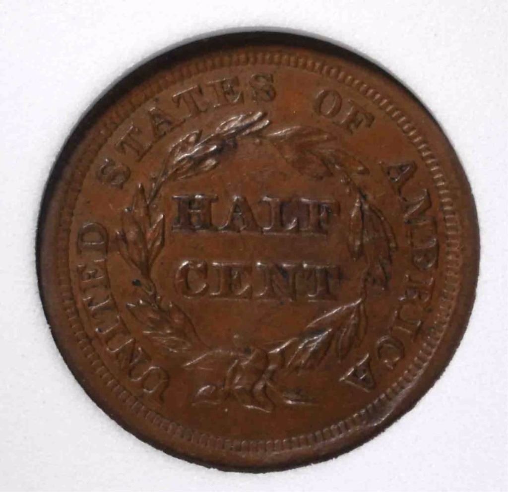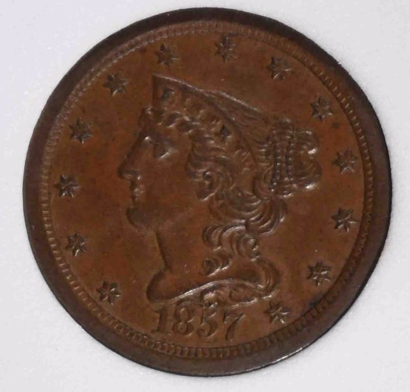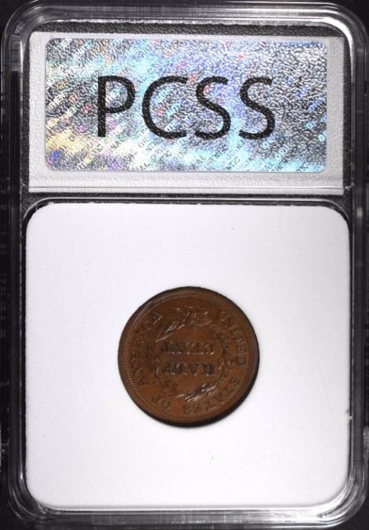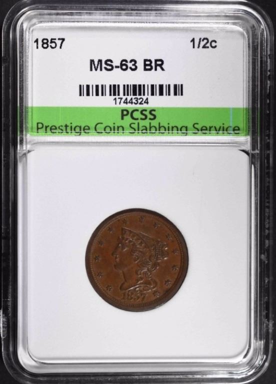 1857 HALF CENT, PCSS CH BU BROWN ESTIMATE $475 - $500.