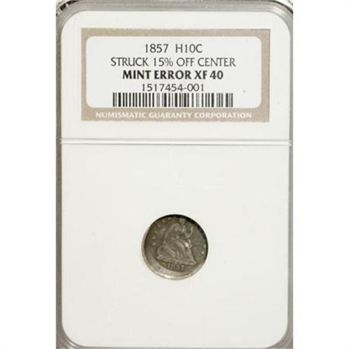 1857 Half Dime XF40 NGC, Struck 15% Off Center