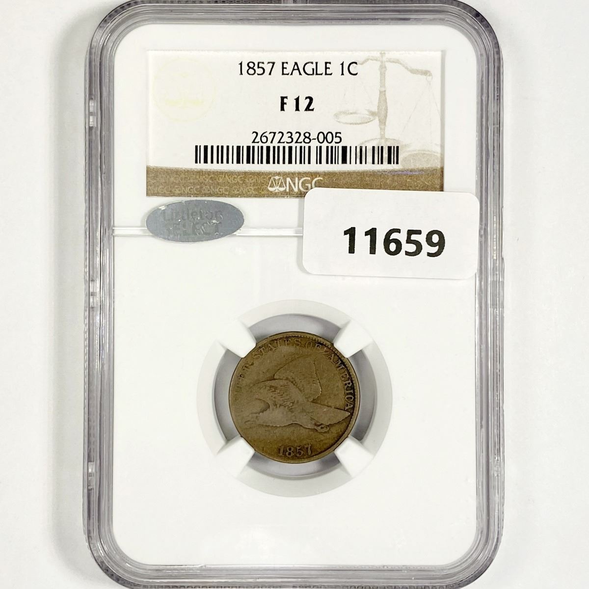 1857 Littleton Coin Flying Eagle Cent NGC-F12