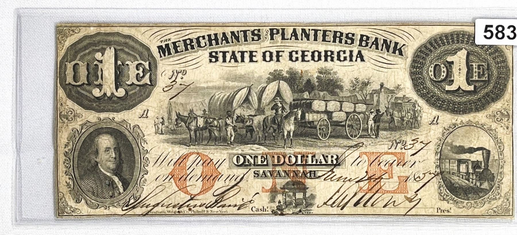 1857 Merch. & Planters Bank $1 Dollar Bill