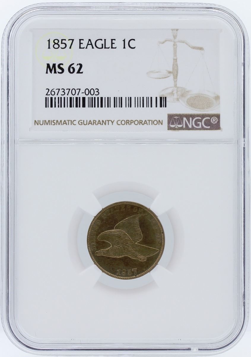 One 1857 NGC MS62 Flying Eagle Cent. NGC Certified.