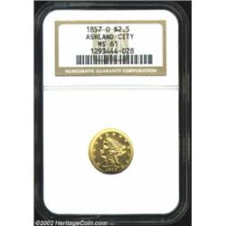 1857-O $2 1/2 MS61 NGC. Very well detailed, although not quite as sharp as the preceding '57-O, with