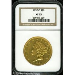 <B>1857-O $20 XF45 NGC.</B></I> An attractive green-gold New Orleans mint issue with traces of wear seen on the device highpoints. A significant issue with only 30,000 coins struck.<BR><I>From The Richard J. Chouinard Collection of United States Coins, Part Two.</B></I> Lot:8968