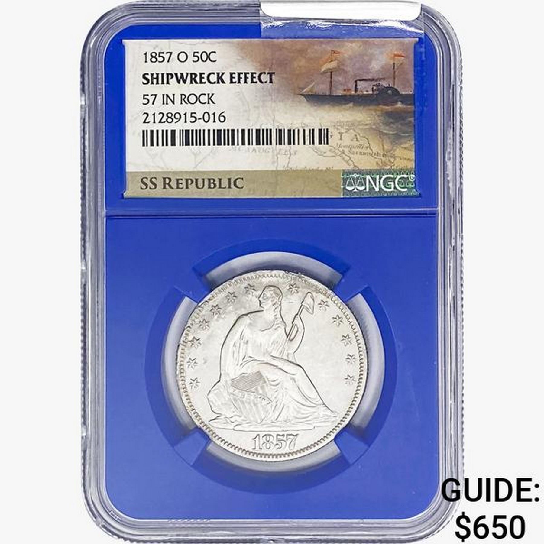 1857-O 57InRock SL. 50C Ship. Effect W/ Book Set NGC