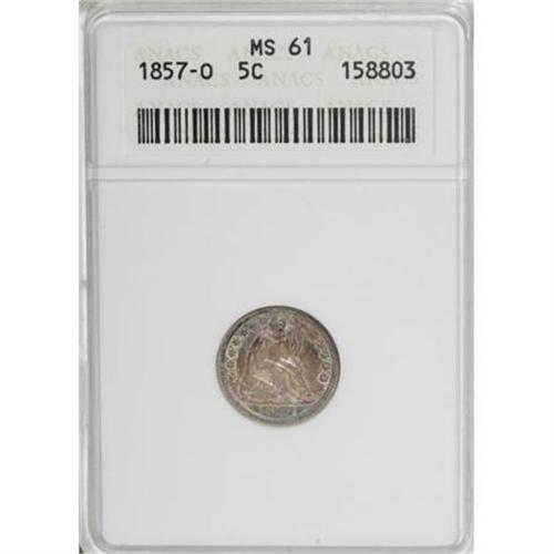<B>1857-O H10C MS61 ANACS.</B></I> NGC Census: (6/105). PCGS Population (1/92). Mintage: 1,380,000. Numismedia Wsl. Price for NGC/PCGS coin in MS61: $275. (#4366)<BR><BR><B>Coin Engraver:</B> Christian Gobrecht<BR><BR><b>Shipping:</b> Coins & Currency (<a target="_blank" href="http://www.heritageauctions.com/common/shipping.php">view shipping information</a>\)