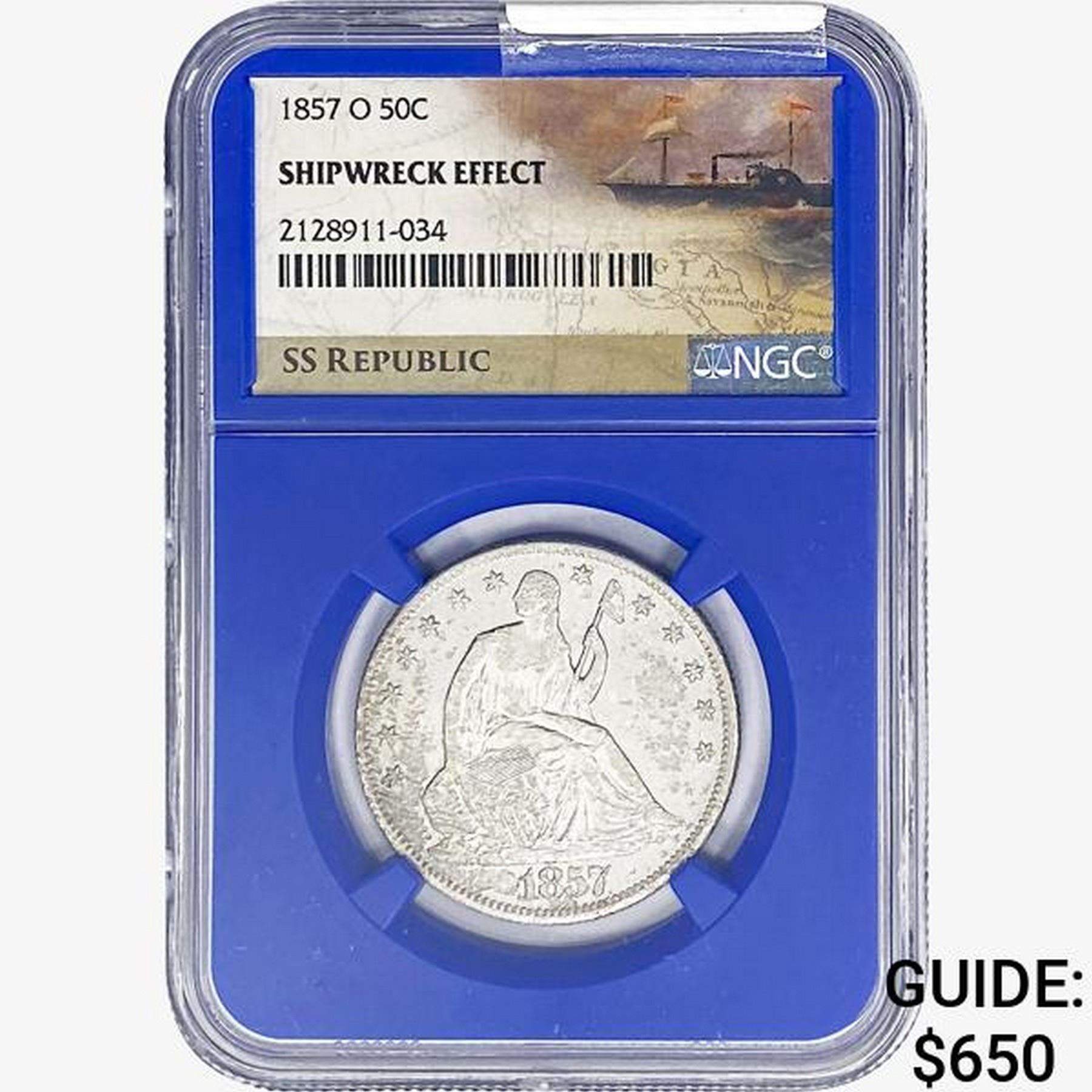 1857-O SL. 50C Ship. Effect W/ Book Set NGC