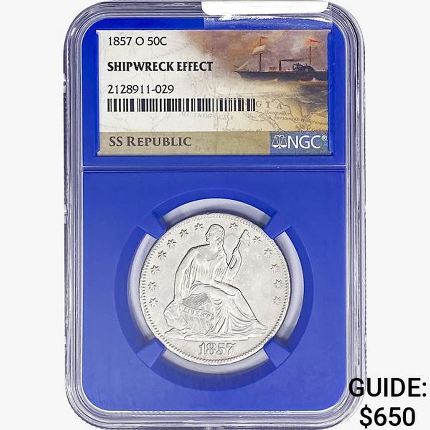 1857-O SL. 50C Ship. Effect W/ Book Set NGC
