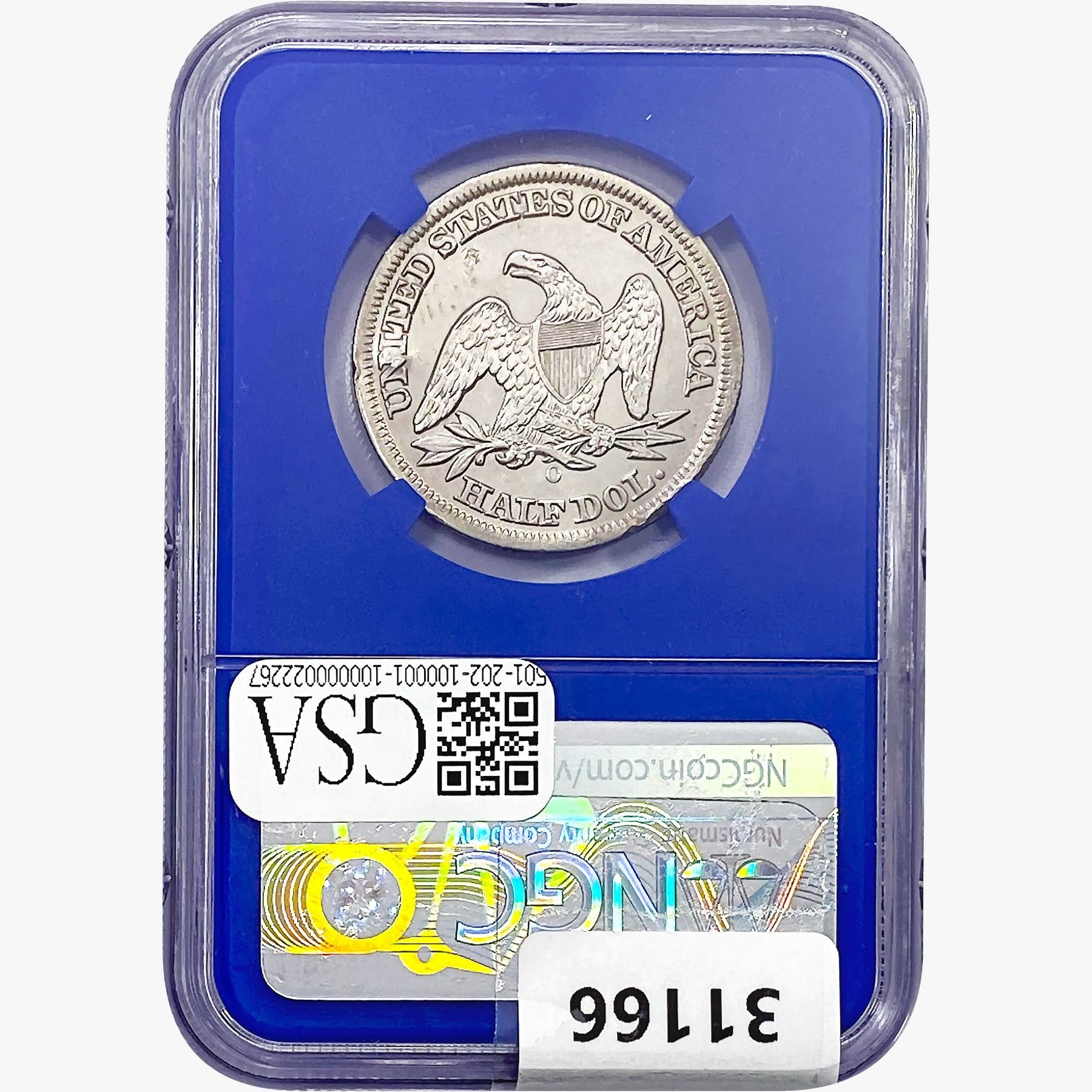 e. Coins sold referencing a third-party grading service are sold “AS IS” without any express or implied warranty, except for a guarantee by GSA that they are genuine. Removal or alteration of the holder, voids all of Bidder’s claims concerning that Product. Certain warranties may be available from the grading services and Bidders are referred to them for further details: Numismatic Guaranty Corporation (NGC), PO Box 4776, Sarasota, FL 34230, www.ngccoin.com/services/writtenguarantee.asp; Professional Coin Grading Services (PCGS), PO Box 9458, Newport Beach, CA 92658, www.pcgs.com/guarantee.html; ANACS, 6555 S. Kenton St., Ste. 303, Englewood, CO 80111; and Independent Coin Grading Co. (ICG), 7901 East Bellview, Ave., Suite 50, Englewood, CO 80111.