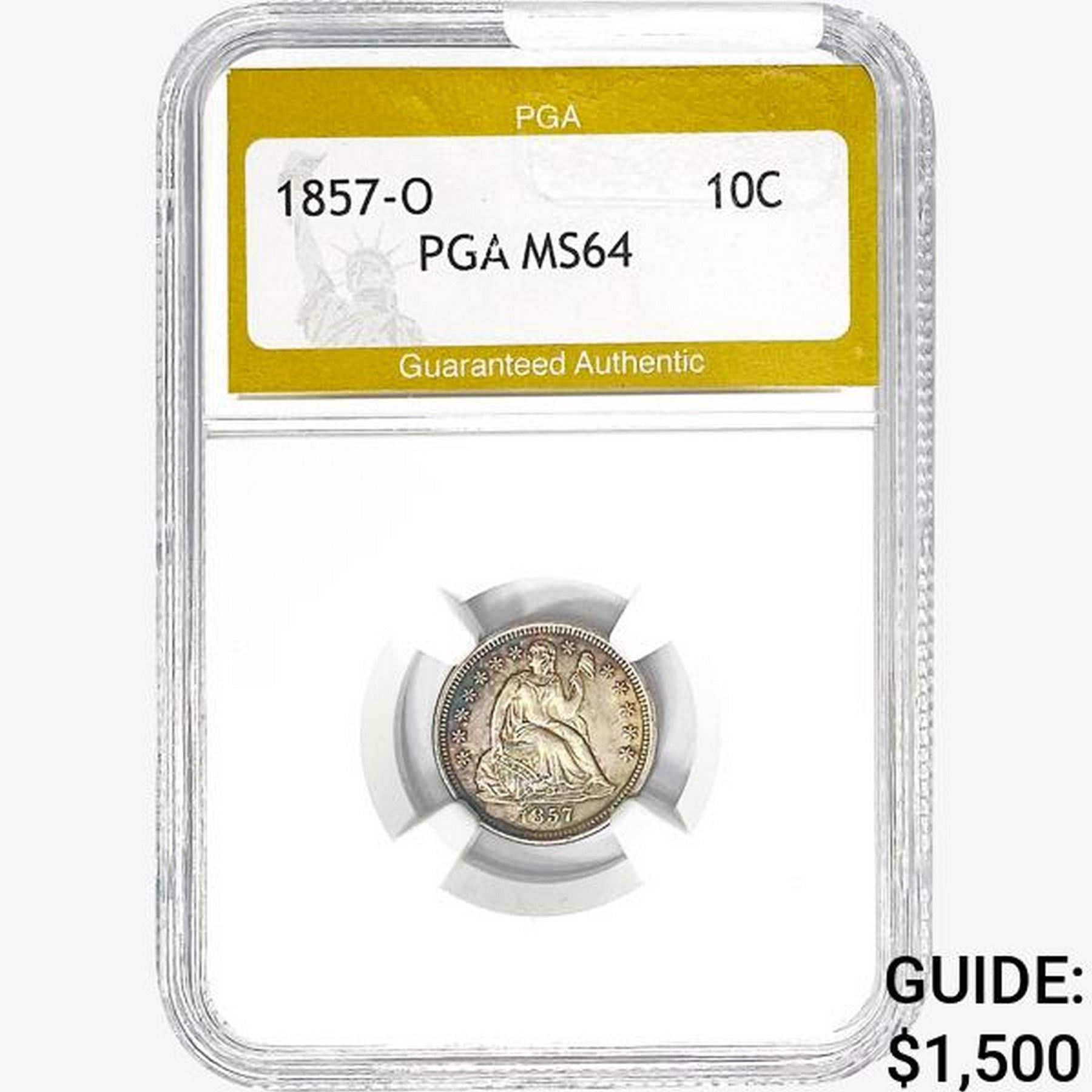 1857-O Seated Liberty Dime PGA MS64