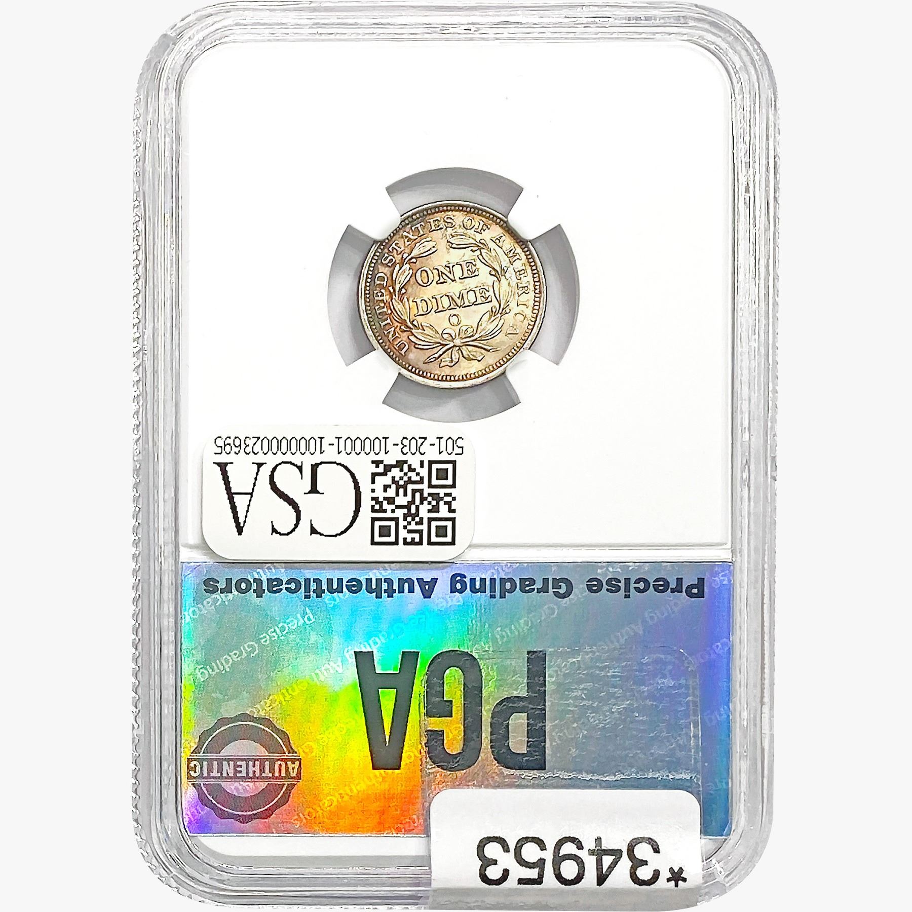 COINS AND CURRENCY LISTED IN GSA’S CATALOG AS GRADED AND ENCAPSULATED BY PCGS, NGC, ANACS, ICG, PCGS CURRENCY, PMG, PCGS BANKNOTE GRADING, CMC OR ANY OTHER THIRD-PARTY GRADING SERVICE ARE LIKEWISE SOLD “AS-IS” EXCEPT AS EXPRESSLY SET FORTH HEREIN. ALL THIRD-PARTY GRADING SERVICE GUARANTEES, INCLUDING AUTHENTICITY, ARE THE SOLE RESPONSIBILITY OF THE THIRD-PARTY GRADING SERVICE AND NOT WARRANTIES OR GUARANTEES OF GSA. BIDDERS SHOULD CONTACT THESE THIRD-PARTY GRADING SERVICES DIRECTLY WITH RESPECT TO ANY CLAIMS OR QUESTIONS THEY MAY HAVE CONCERNING THEIR GUARANTEES AND WARRANTIES. BIDDERS ACKNOWLEDGE AND AGREE THAT AUCTIONEER IS NOT BOUND BY OR LIABLE FOR ANY OPINION OR CERTIFICATION BY ANY THIRD-PARTY GRADING SERVICE. REMOVAL OF A PRODUCT FROM ITS PROTECTIVE CASING OR HOLDER OR ALTERATION OF ANY COIN HOLDER WAIVES ALL RIGHTS CONCERNING THE PRODUCT CONTAINED THEREIN.